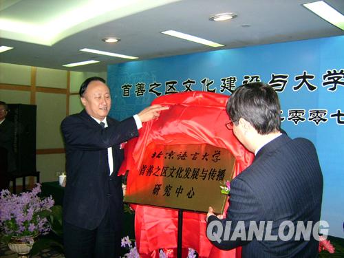 图一:中共北京市委常委、教育工委书记朱善璐(图左)与北京语言大学校长崔希亮(图右)共同揭牌